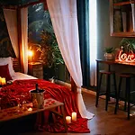 L'appartement comprend 1 chambre à coucher. Profitez du confort d'une salle de bain dans cet appartement L'Evasion romantique en Amazonie, SPA, Écran cinéma, day use, Lit baldaquin, équipée d'un sèche-cheveux, des peignoirs de bain et des draps de bain. De plus, vous trouverez une baignoire spa, une douche à l'italienne et une toilette séparée.